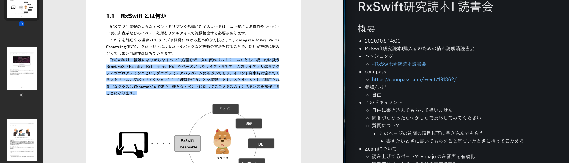 はじめに RxSwift研究読本シリーズ購入済みの読者が積ん読を解消するために、その著者が読み上げていく会をやってみました。 読書会といっても交代で読むわけではなく、著者であるわたくし(yimajo)が全部読み上げるスタ […]